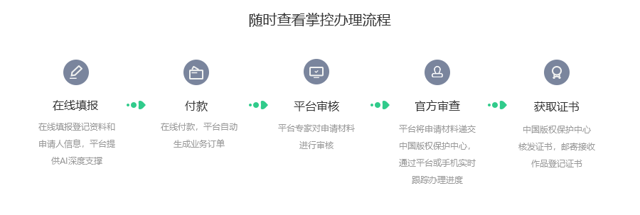 平台对 作品著作权登记 每个业务环节、期限进行即时跟踪提醒,提供邮件、手机通知,随时随地掌握申请进度